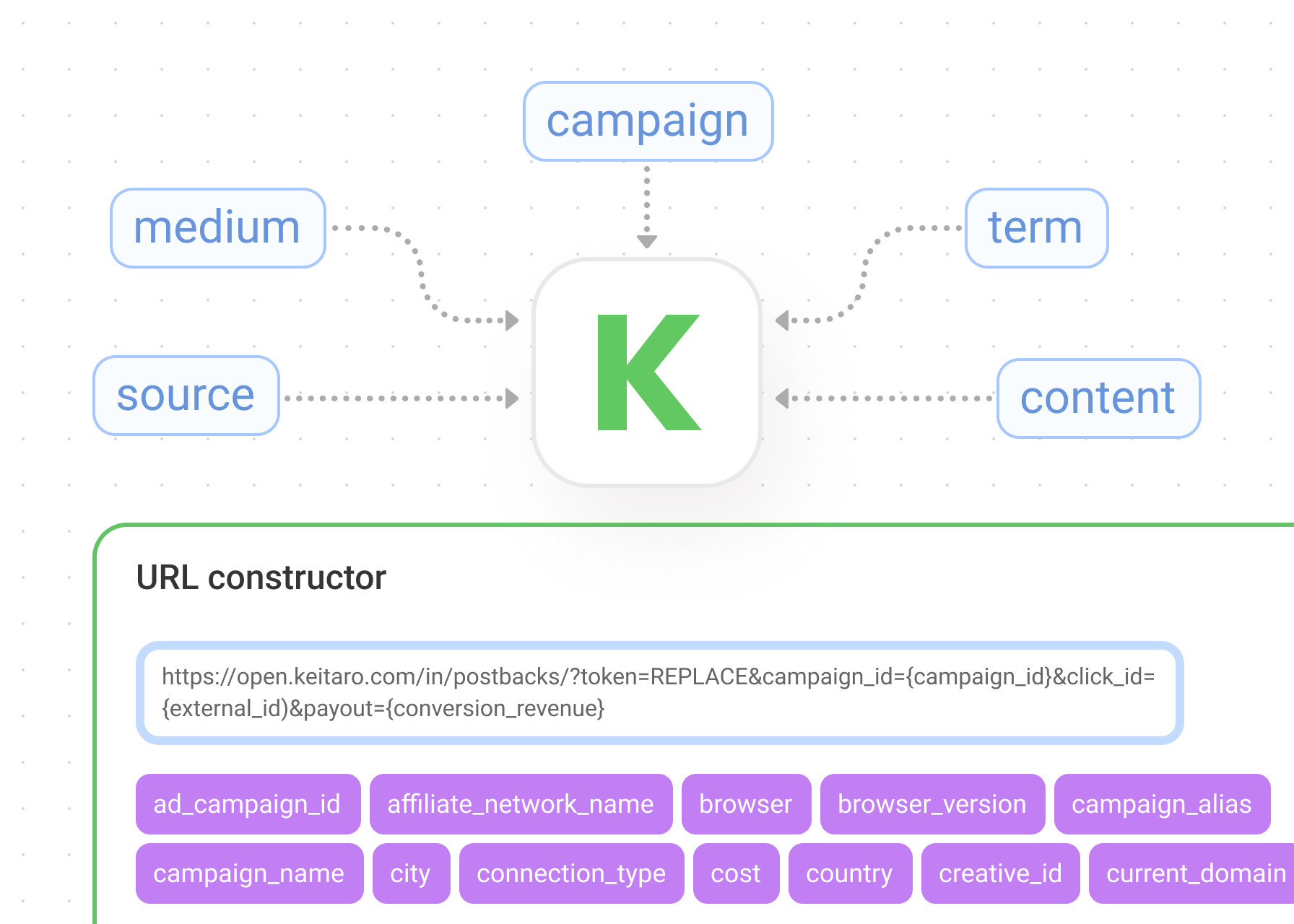 Track traffic across channels with 35+ customizable parameters — from UTM tags to partner IDs.
